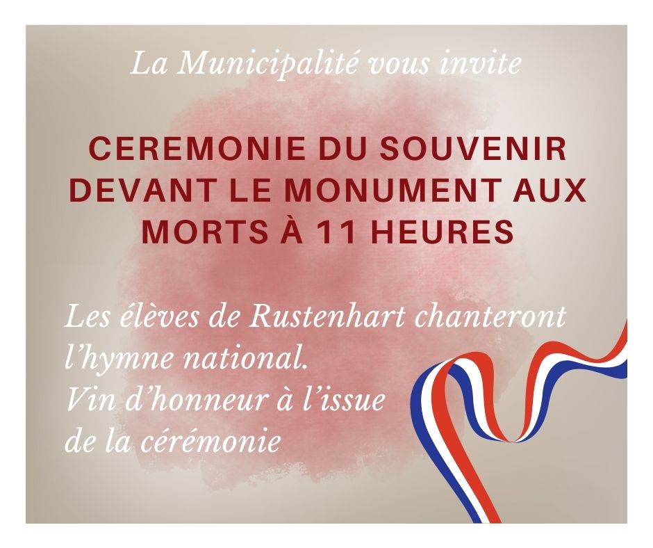 RustenhartUne commémoration en mémoire de la fin de la Première Guerre mondiale aura lieu devant le monument aux morts à 11 heures
